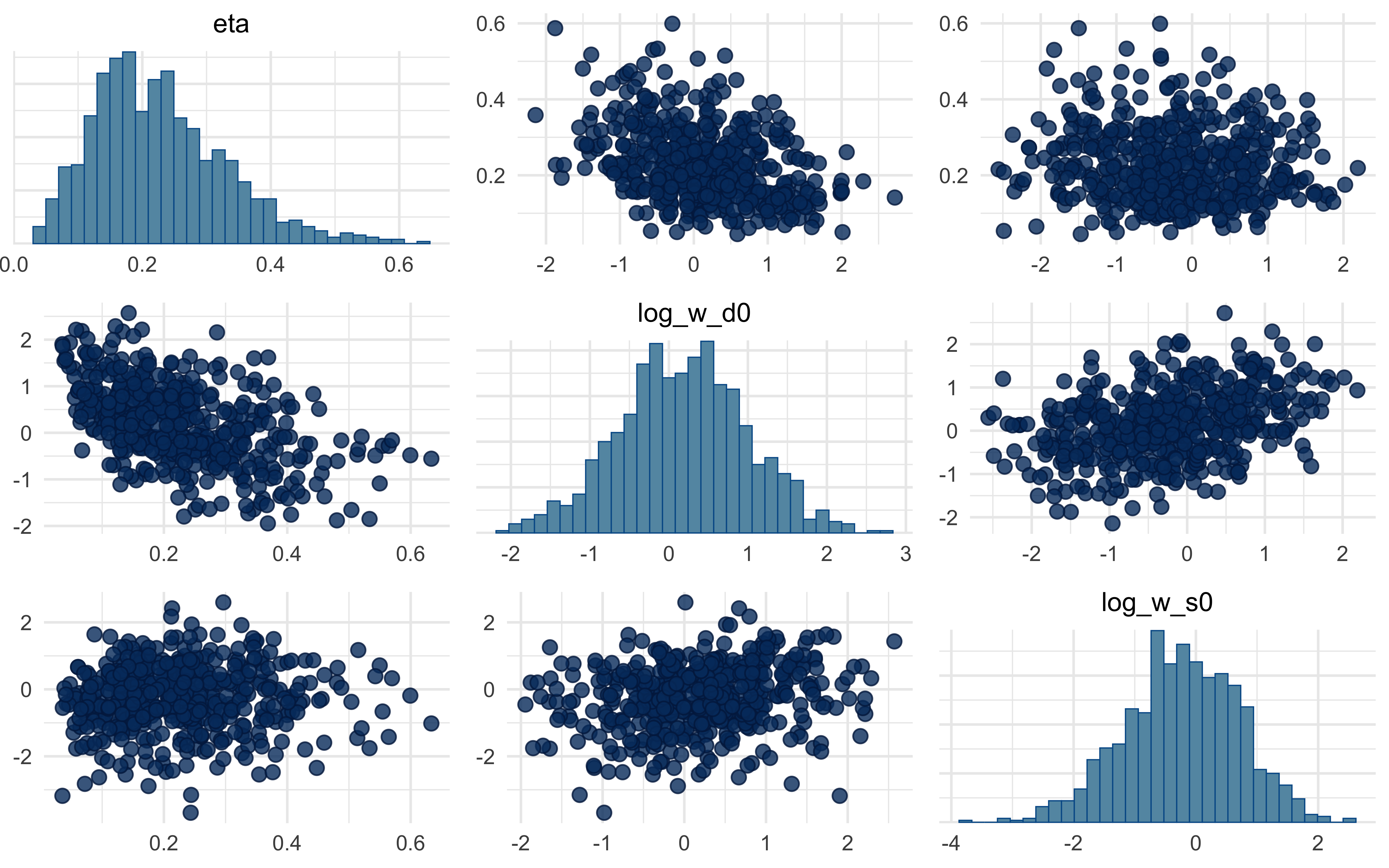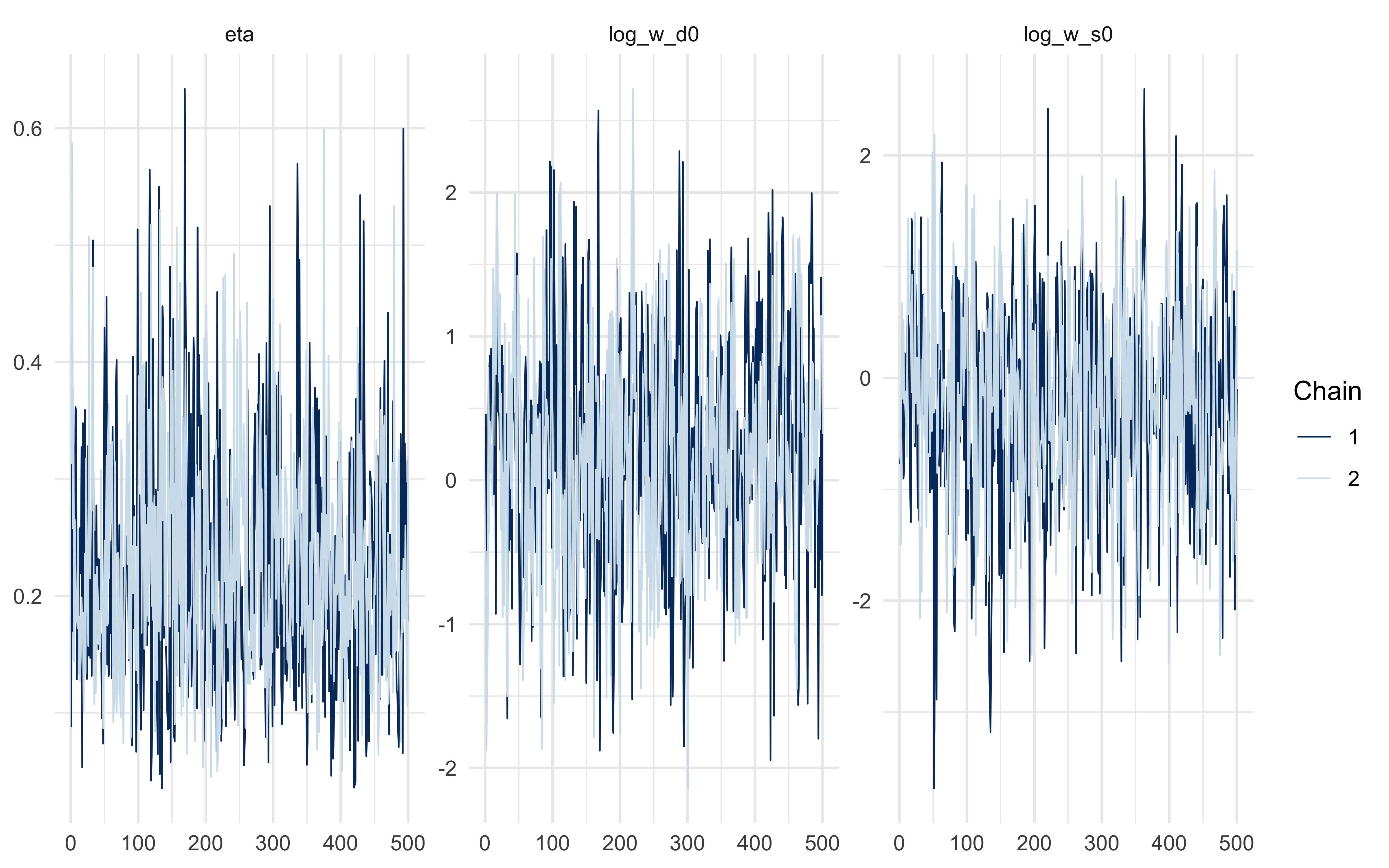 }fit_B$summary(c("eta", "log_w_d0", "log_w_s0"))# A tibble: 3 × 10