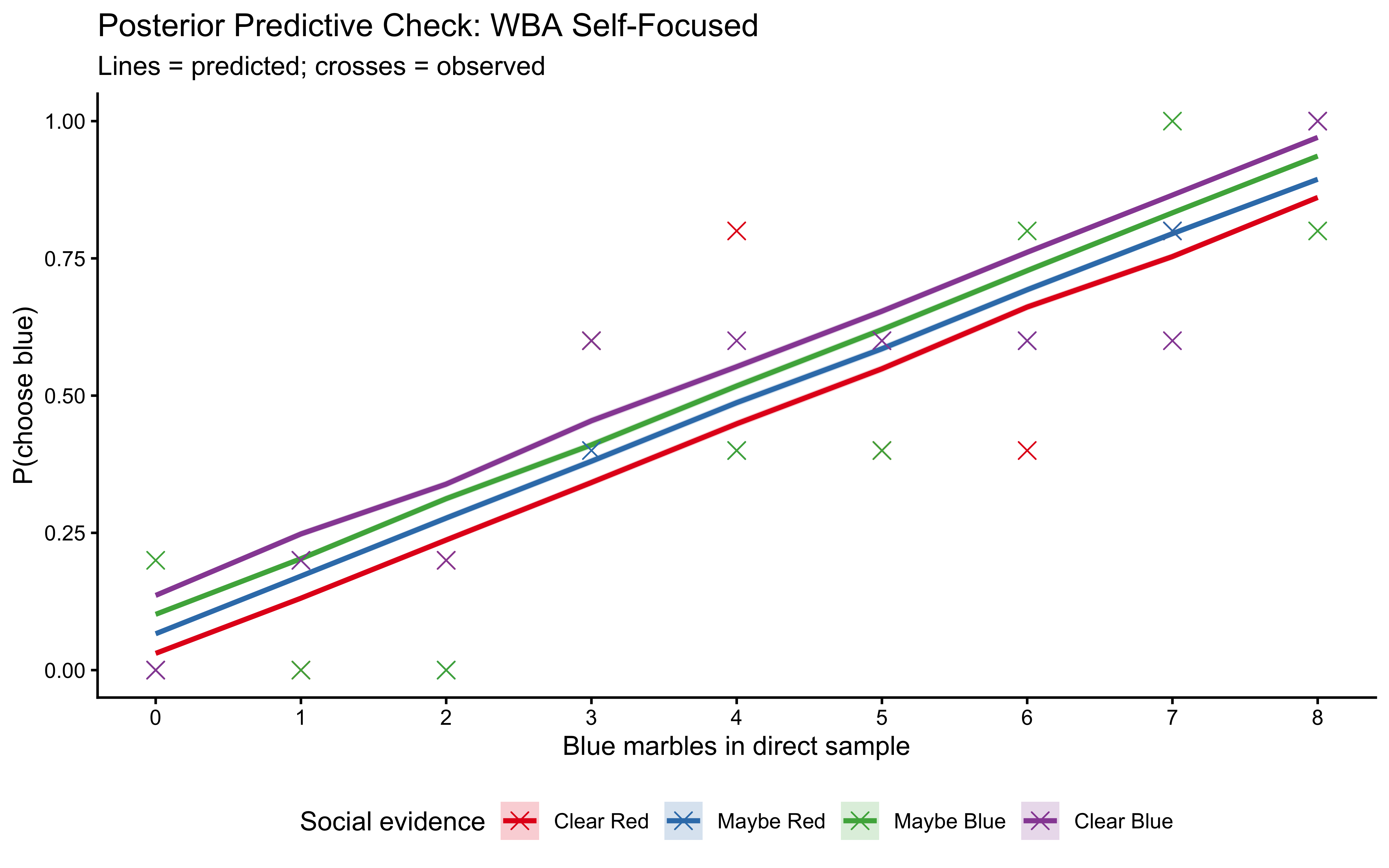 We now fit the model to self-focused agent data (the agent most likely to show an overcounting pattern) and compare it to the WBA.