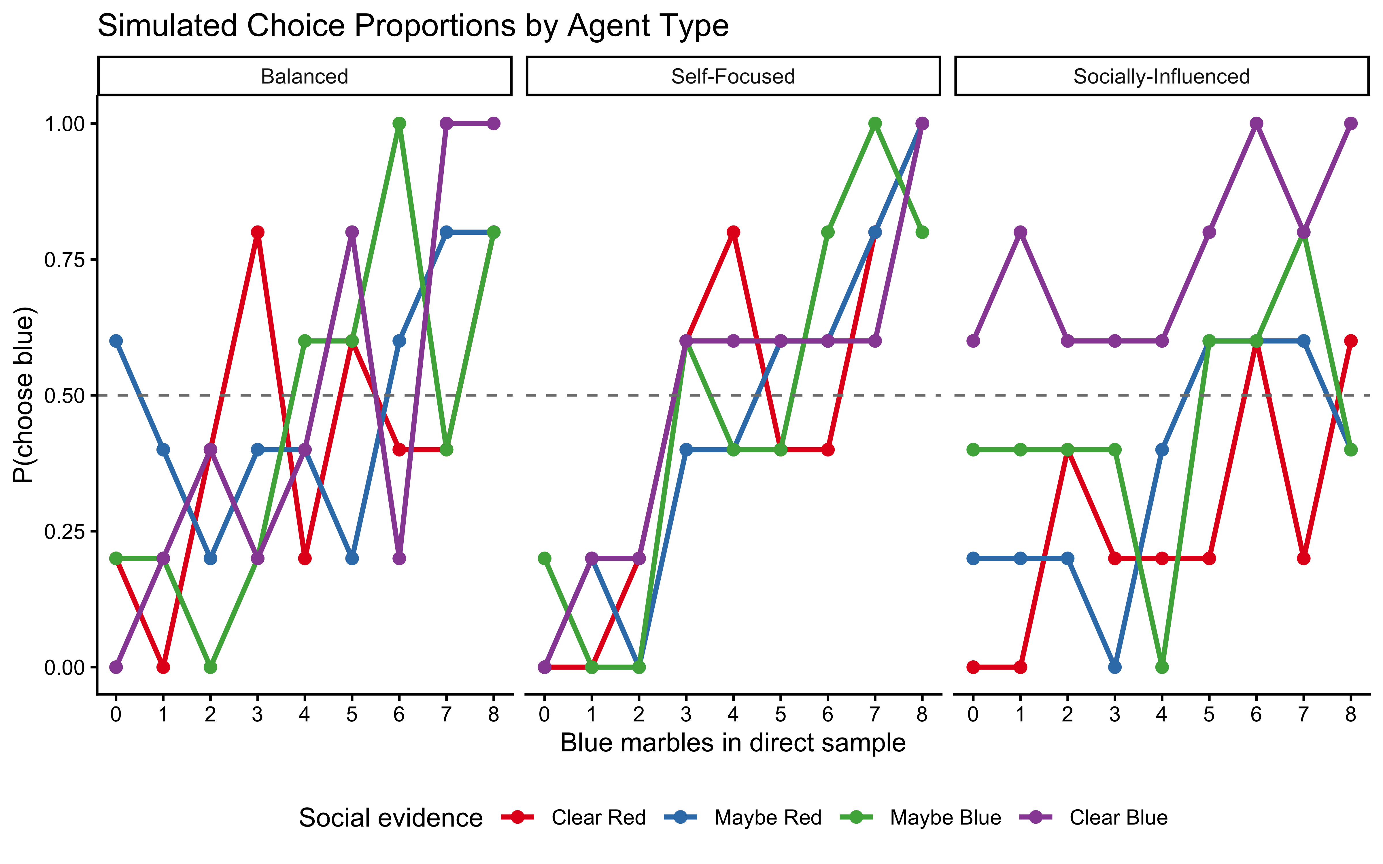 - Implement three cognitive models — a Simple Bayesian Agent (SBA), a Proportional Bayesian Agent (PBA), and a Weighted Bayesian Agent (WBA) — in raw Stan, and understand the distinct cognitive claim encoded by each.