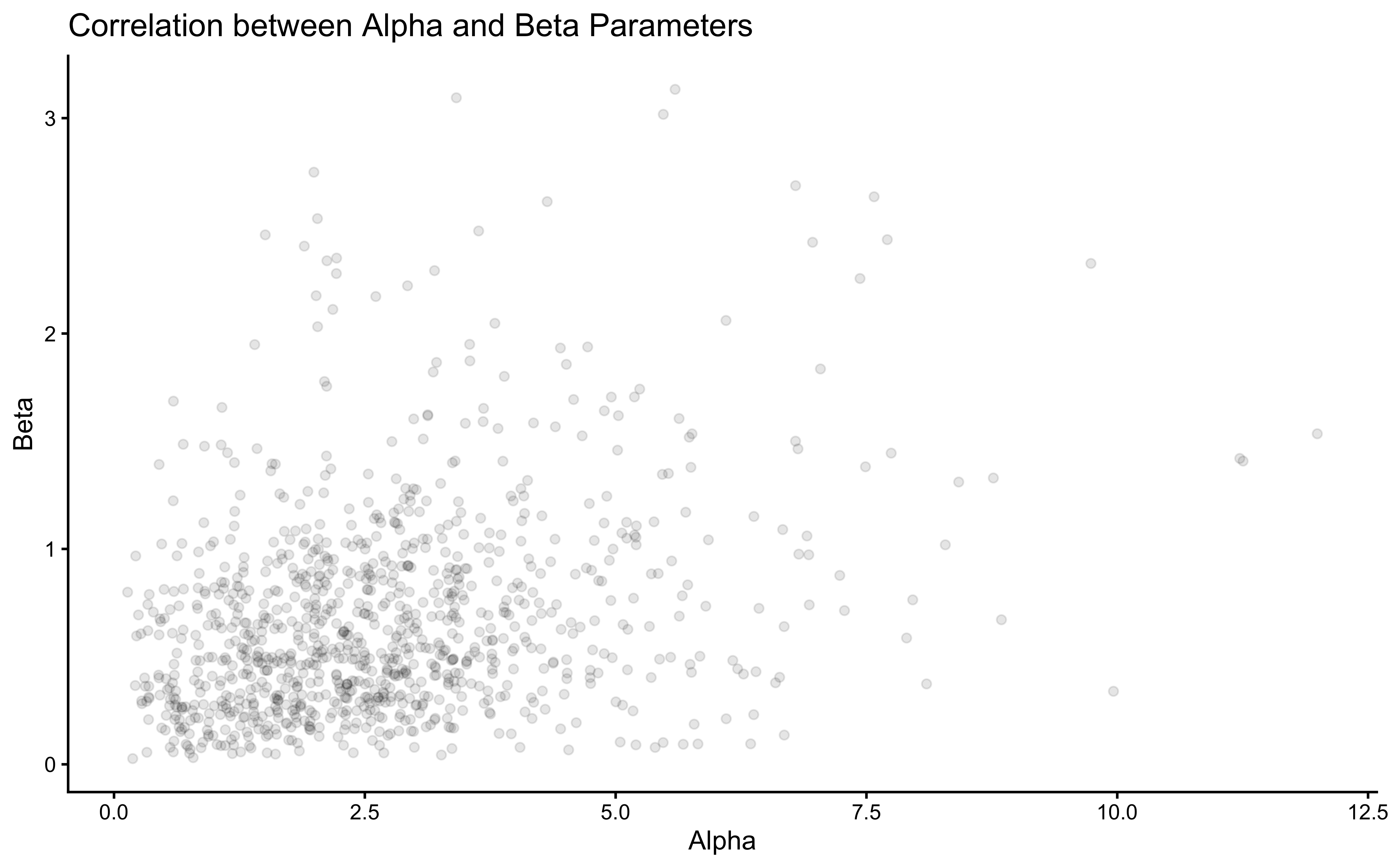 labs(title = "Correlation between Alpha and Beta Parameters",