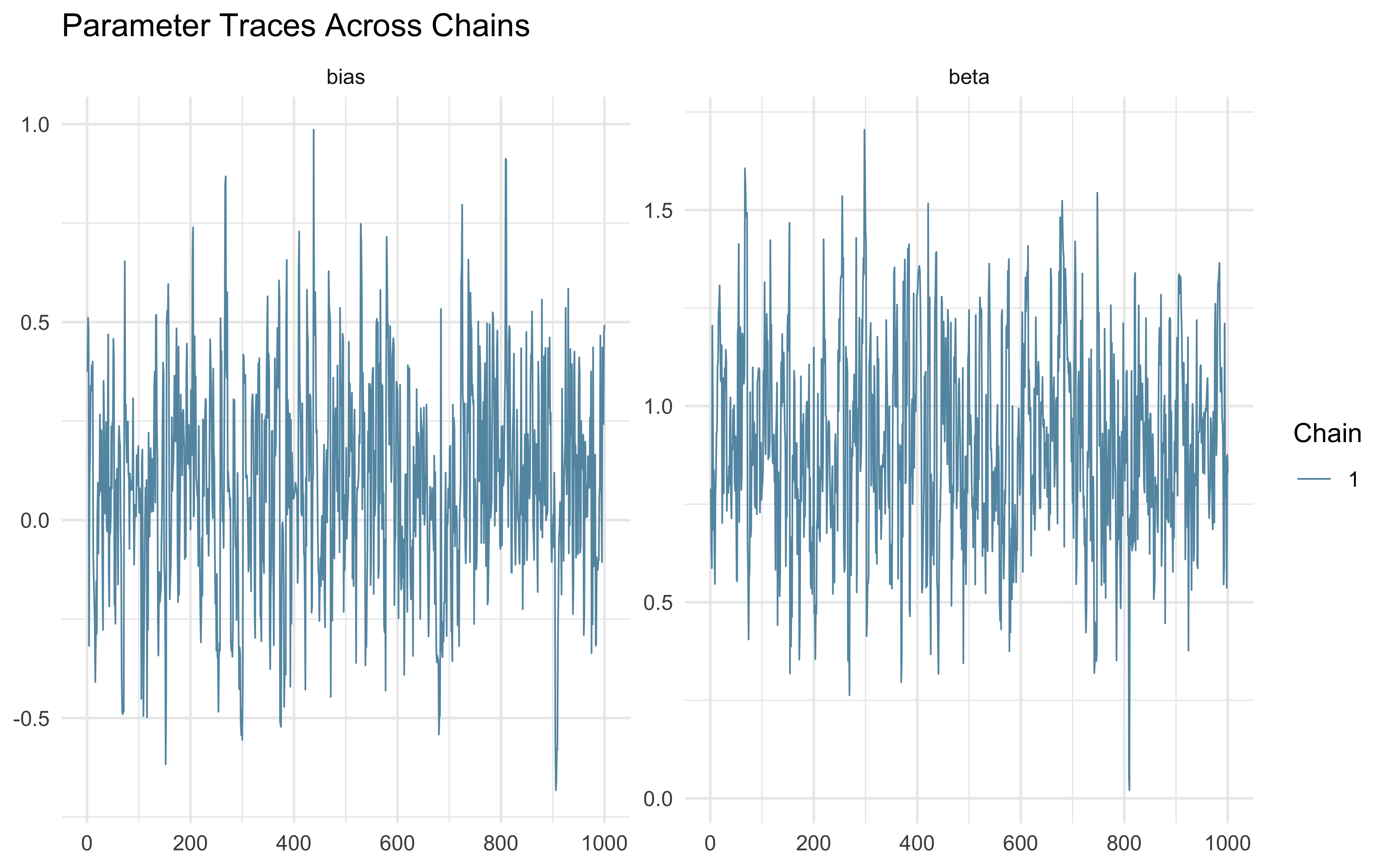 cmdstanr: Use thecmdstanrinterface to compile Stan models and sample from the posterior distribution of parameters. - Interpret Model Output: Understand and visualize basic MCMC diagnostics (trace plots) and parameter estimates (posterior distributions, prior-posterior updates).