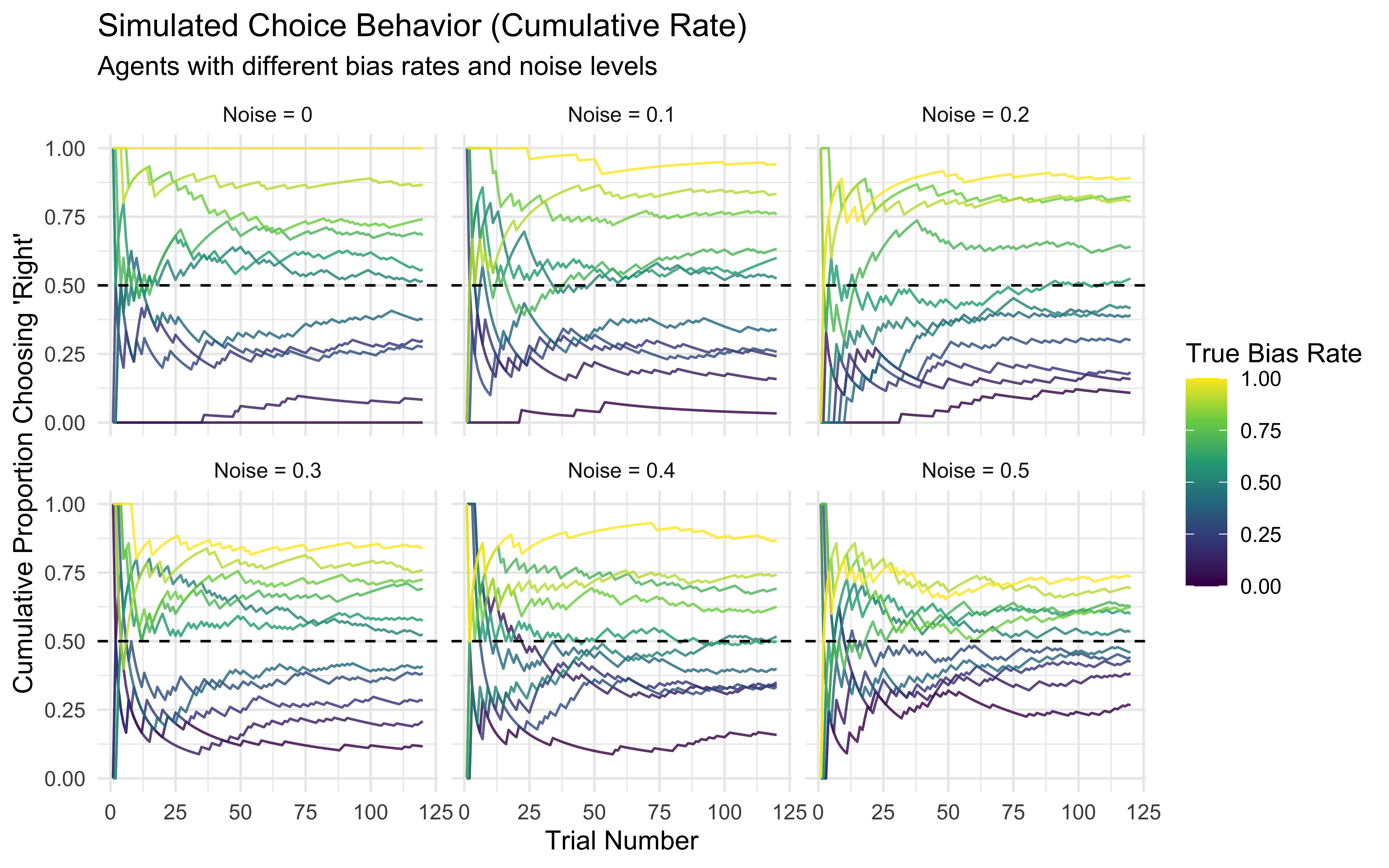 title = "Simulated Choice Behavior (Cumulative Rate)",